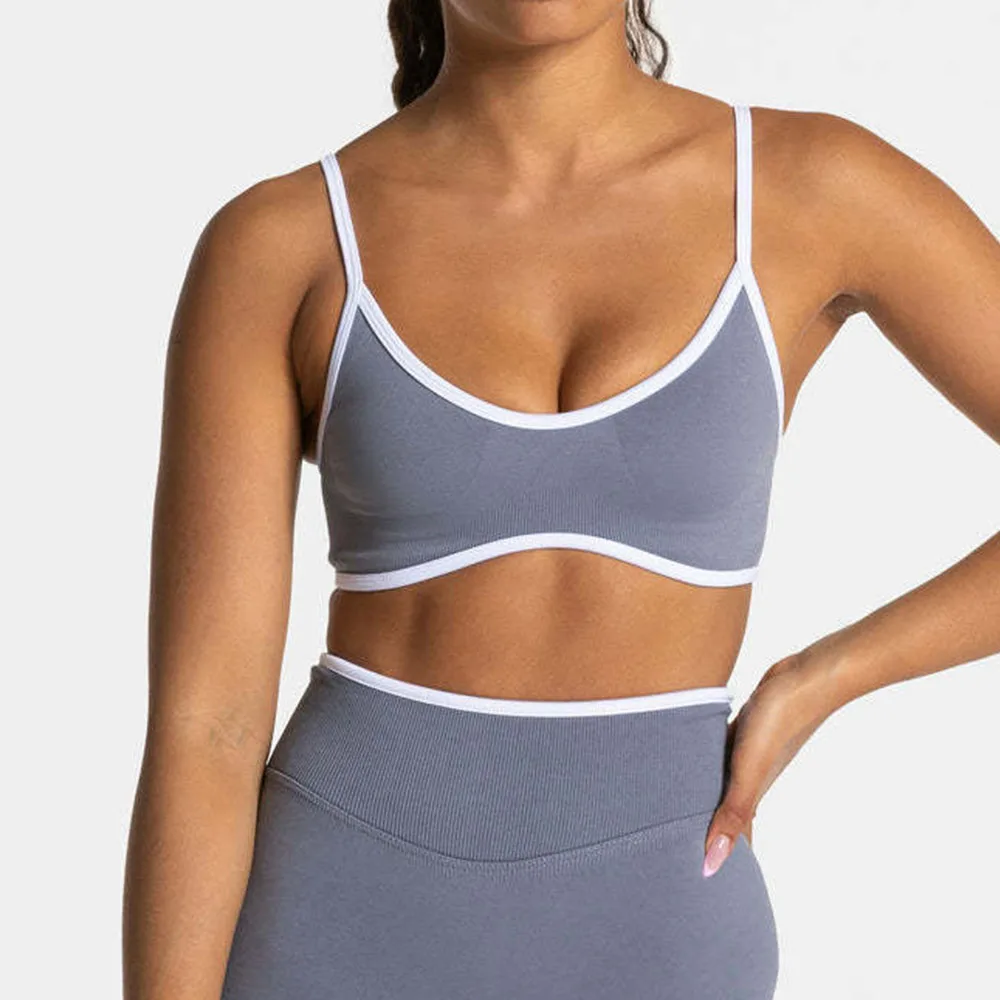 2 pcs White Contrast Color Design Sling Sports Underwear Breathable Yoga Bra Outdoor Fitness Yoga Top and Bottom